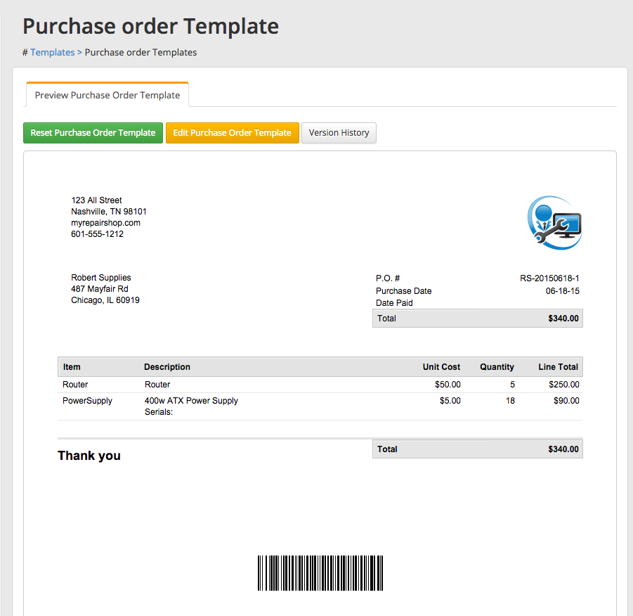 13. Purchase Orders now have a PDF template, and they get attached to emails you send to your vendor!
