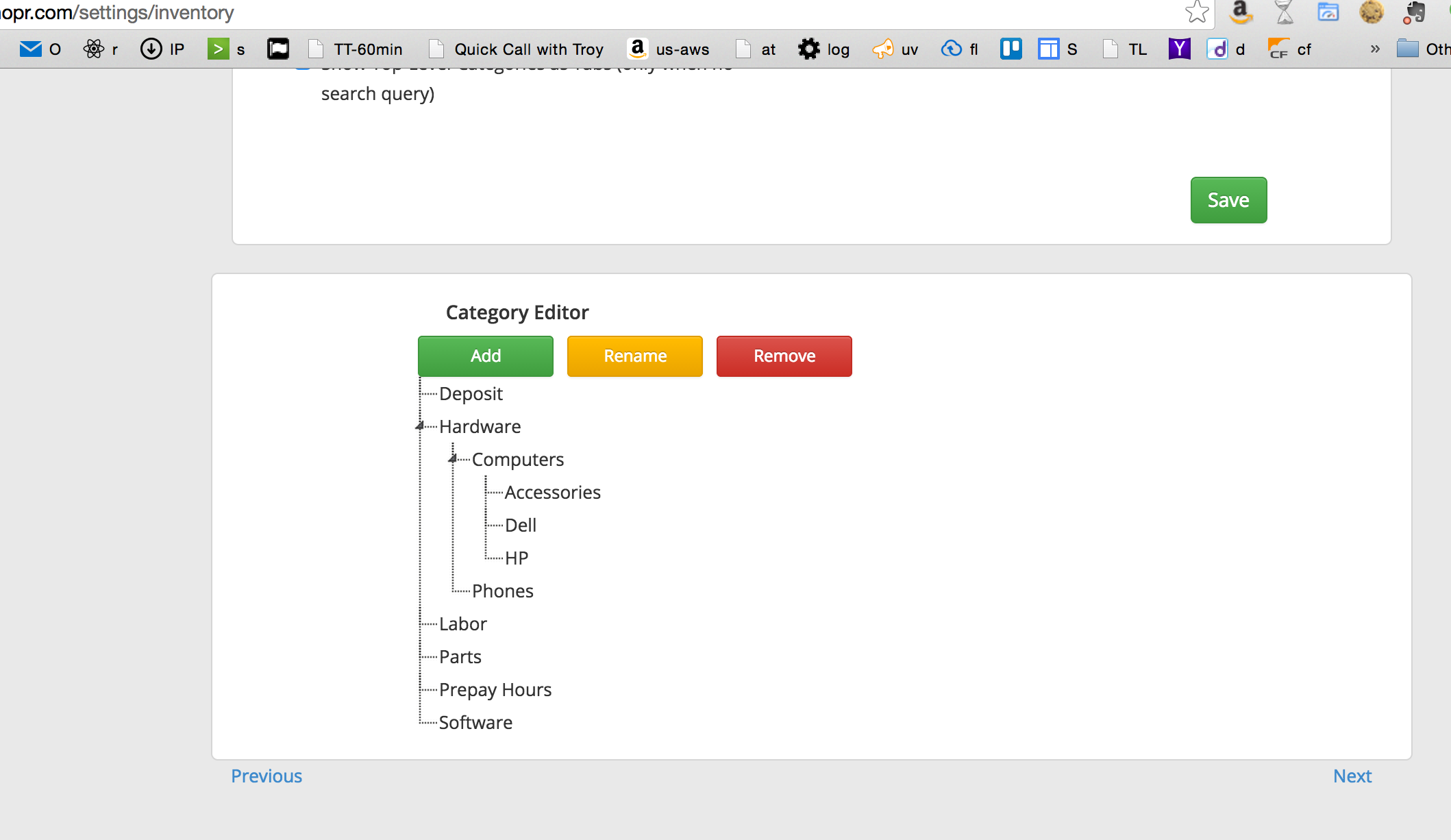 - Add tabs on the Inventory page for top level categories (with opt-in from settings page)