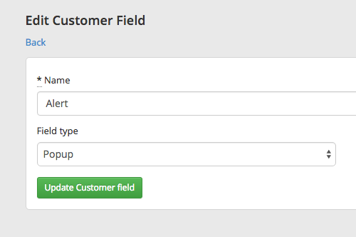 - Now you can add a custom field type “Popup” to a customer, putting a message there will popup once per session when viewing a customer, ticket or invoice.