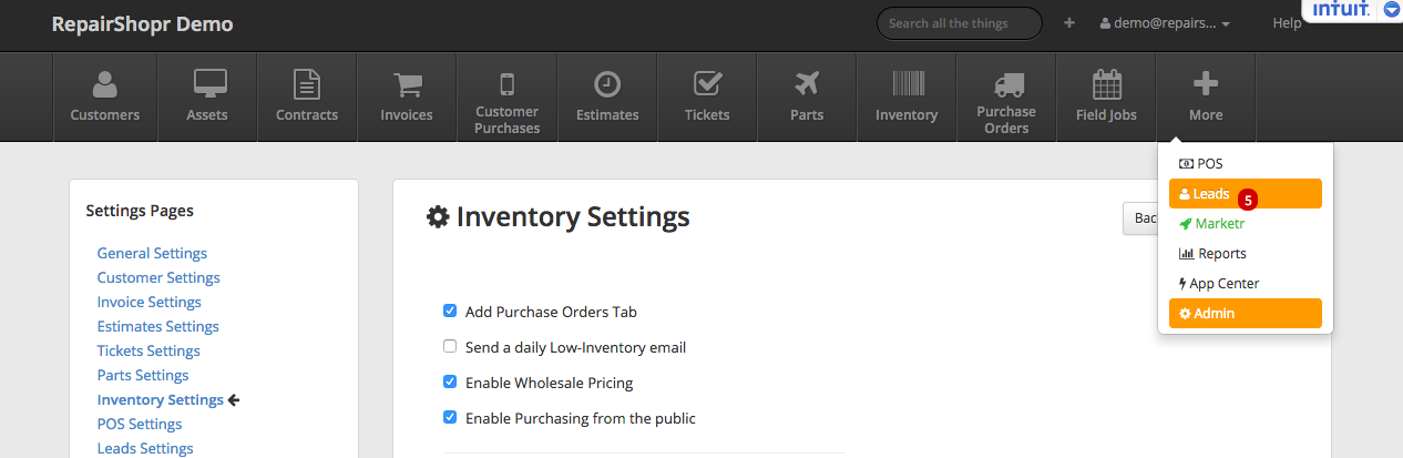 - Customizable Navigation tabs – now in some of the settings pages you can turn on additional main nav links like Assets, Contracts, Customer Purchases, Purchase Orders, and Reports!