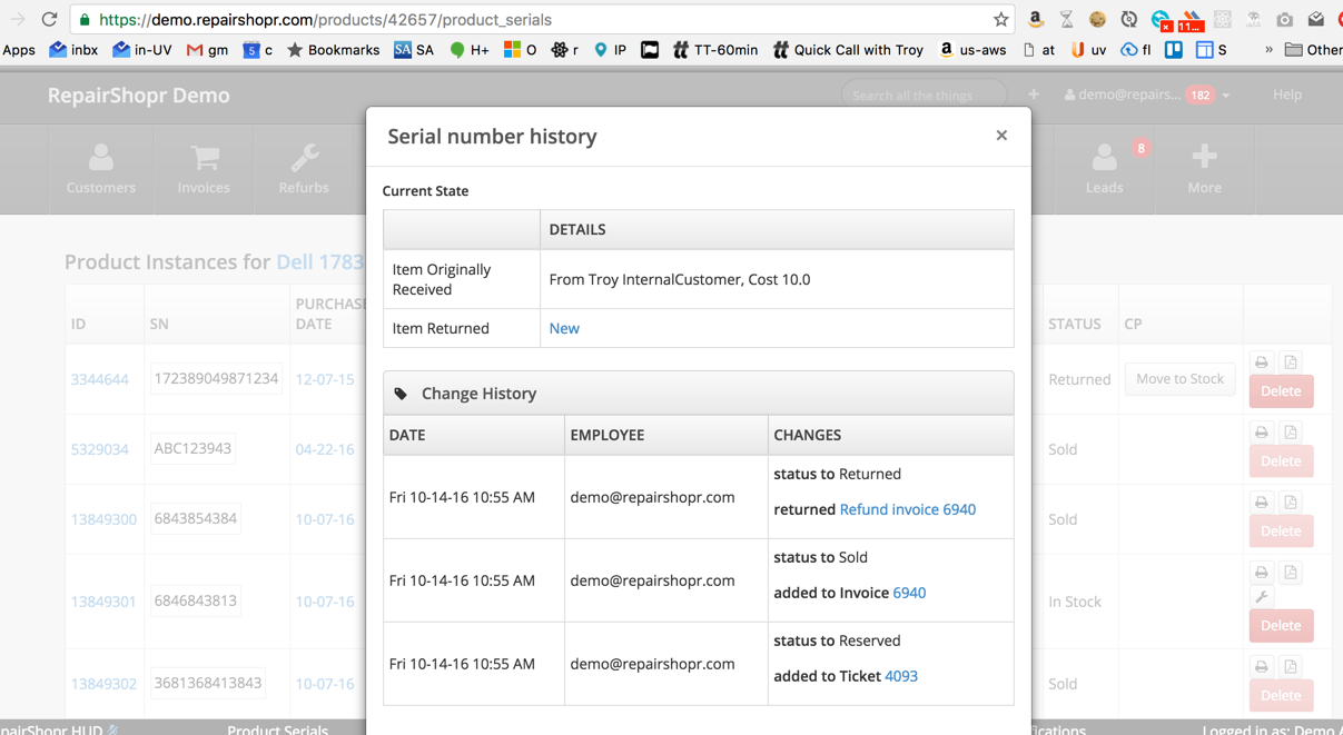 1. Refurbs have been made more powerful! Now you can send any instance of a serialized product to be refurbished–if it’s In-Stock, Broken, or Trashed you can Refurb it to make a new, salable product!