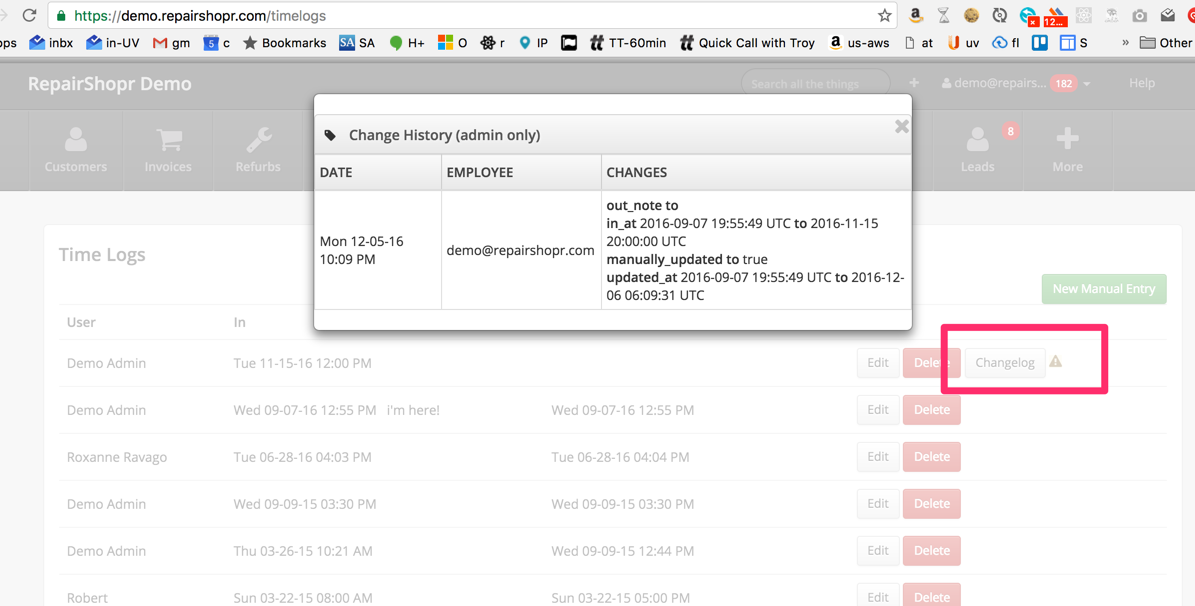 8. Timeclock updates – Now we show much more clearly when a log entry was edited and we moved the manager permissions into the Security Groups.