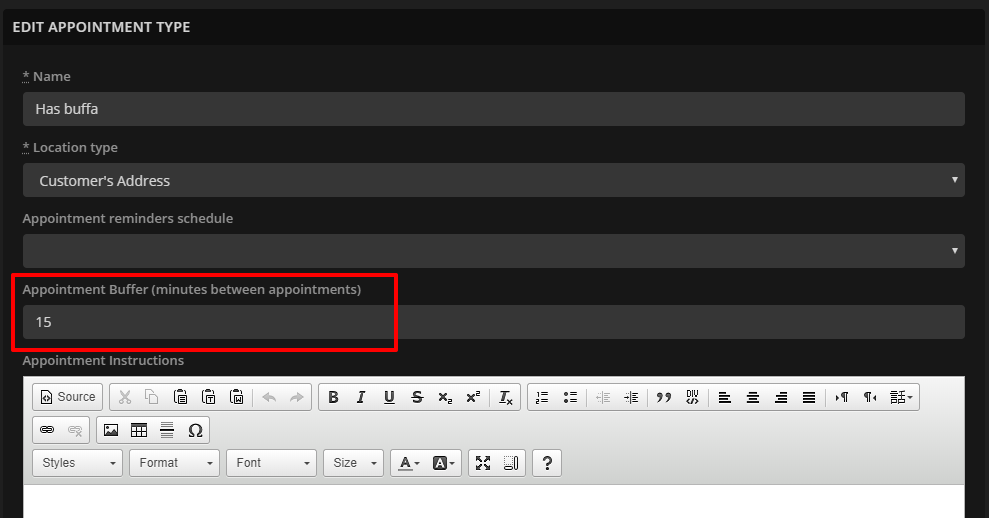 - Appointments: We’ve added the ability for you to create “buffers” between Appointments, allowing you to have better control over how much time you’d like to allow in between scheduled Appointments.